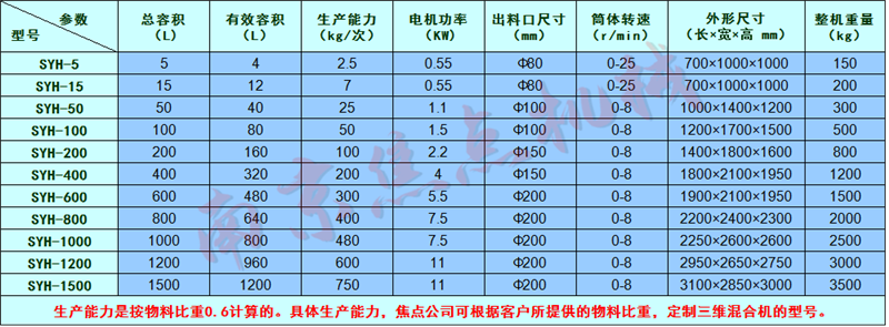 一、用途 三維混合機(jī)原名三維擺動混合機(jī),又稱振蕩式混合機(jī),是目前國內(nèi)先進(jìn)的一種粉體混合設(shè)備,該機(jī)用于制藥、化工、輕工、電工、機(jī)械、礦冶國防工業(yè)及各科研單位的粉狀,顆粒狀物料的高均勻度的混合。 二、工作原理 三維運(yùn)動混合機(jī)工作原理與傳統(tǒng)的回轉(zhuǎn)式混合機(jī)不盡相同,它在立方體三維空間上作獨特的平移、轉(zhuǎn)動、搖滾運(yùn)動、使物料在混合筒內(nèi)處于“旋轉(zhuǎn)流動-平移- 顛倒落體”等復(fù)雜的運(yùn)動狀態(tài),即所謂的TURBULA狀態(tài); 產(chǎn)生一股交替脈沖,連續(xù)不斷地推動物料,運(yùn)動產(chǎn)生的湍動則有變化的能量梯度,從而使被混合的物料中各質(zhì)點具有不能的運(yùn)動狀態(tài),各質(zhì)點在頻繁的運(yùn)動擴(kuò)散中不斷的改變自己所處的位置,產(chǎn)生了滿意的混合效果。 三、結(jié)構(gòu)特點 該機(jī)由機(jī)座、驅(qū)動系統(tǒng)、三維運(yùn)動機(jī)構(gòu)、混合筒,變頻調(diào)速電機(jī),進(jìn)料口出料口,電器控制系統(tǒng)等組成,與物料直接接觸的混合筒采用優(yōu)質(zhì)不銹鋼材料制造,筒體內(nèi)壁經(jīng)精密拋光。 1、機(jī)座:該機(jī)機(jī)座由型號鋼制成,外復(fù)不銹鋼面面析。機(jī)座結(jié)構(gòu)合理,能有效的穩(wěn)定整機(jī),完全符合藥品的GMP要求。 2、驅(qū)動系統(tǒng):該機(jī)的驅(qū)動系統(tǒng)由電機(jī)、傳動減速系統(tǒng)、變頻器等系統(tǒng)組成傳動減速系統(tǒng),設(shè)計簡練,傳動平穩(wěn)可靠,變頻器能有效地緩沖重載啟動的慣性,還能準(zhǔn)確的選擇停機(jī)時料筒的最佳位置,以方便進(jìn)料或出料。 3、搖臂機(jī)構(gòu):Y型三維運(yùn)動搖臂機(jī)構(gòu)采用不銹鋼材料,并經(jīng)拋光處理、造型美觀,可在10萬級100級潔凈區(qū)域內(nèi)使用。 4、混料筒:混料筒采用優(yōu)質(zhì)不銹鋼精制,其內(nèi)壁及外壁經(jīng)拋光處理。筒體氣密性好,平面光潔無死角、無殘留、易清洗。出料采用獨特設(shè)計的偏心錐臺,不對稱設(shè)計更利于物料的均勻混合,放料時,出料口處于混合容器的最低位置,同時將物料放盡。出料閥采用本廠獨特設(shè)計的蝶形閥,密封性能好,出料方便,不殘留。 四、型號參數(shù)